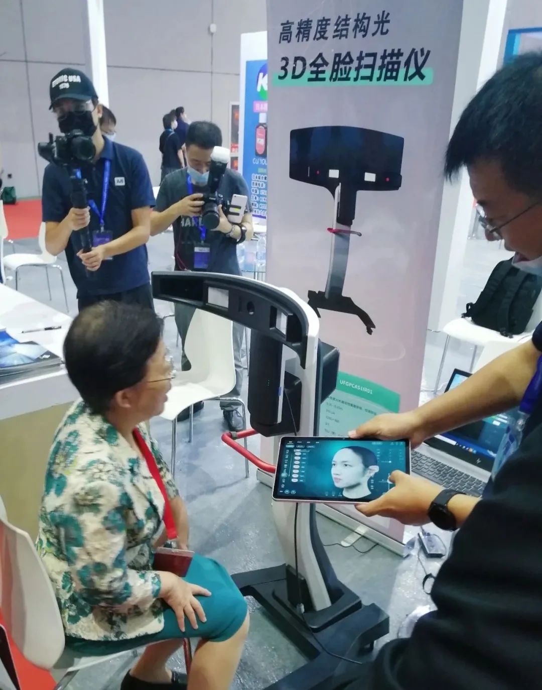 小優(yōu)科技受邀參加2021中日韓健康與美麗產(chǎn)業(yè)博覽會,在本次博覽會上小優(yōu)科技展出最新高精度3D全臉掃描儀,通過三維重建技術(shù)還原人臉真實三維信息,進(jìn)而用量化美學(xué)指標(biāo)對人臉外觀缺陷進(jìn)行準(zhǔn)確判斷,設(shè)計個性化操作模式,模擬最佳整形效果,讓現(xiàn)場觀眾親身體驗高精度3D人臉數(shù)據(jù)給醫(yī)美行業(yè)帶來的顛覆性。